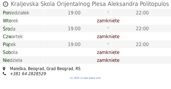| Niedziela | zamkniete | |||||